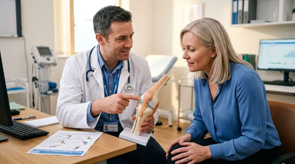 A physiotherapist can build a personalised plan, while a specialist may recommend imaging. For persistent inflammation or osteoarthritis, options include corticosteroid injections for short-term relief, hyaluronic acid injections to lubricate the joint, and Arthrosamid a polyacrylamide hydrogel injection that integrates into joint tissue and provides longer-lasting cushioning, with some women reporting relief for two or more years. All treatments work best alongside exercise, not instead of it.