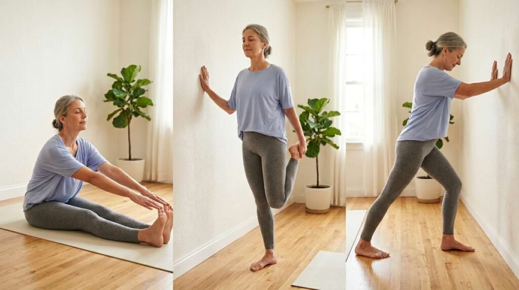Strengthening is only half of the equation. Tight muscles, particularly the hamstrings, quadriceps, and calves exert pulling forces on the knee joint that increase pain and restrict movement. These knee stretches for women at home require no equipment and can be completed in under ten minutes.