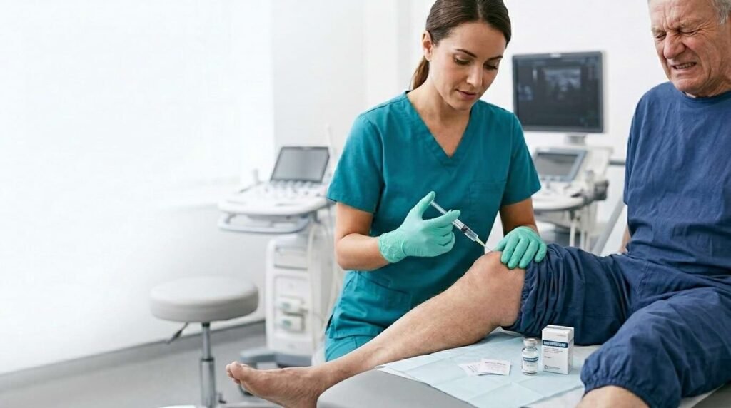 Corticosteroid injections are commonly used to reduce inflammation and provide temporary pain relief. These injections can be helpful for managing severe knee pain, but they should not be used too frequently due to potential side effects, such as cartilage damage with repeated use. Corticosteroids act quickly, but their effects are often short-lived.